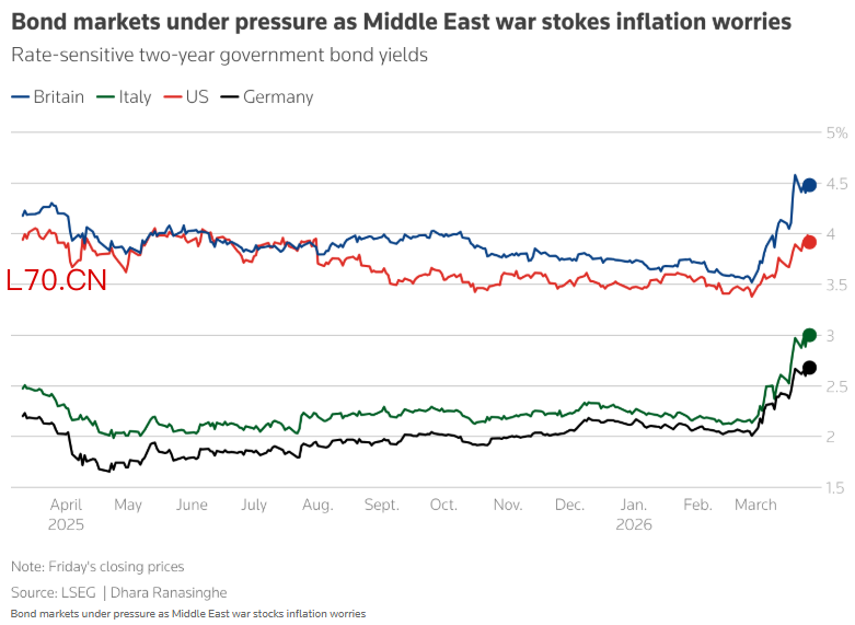 与2022年通胀飙升情景相似,本季度英国和意大利短期借贷成本各飙升75个基点,美国、德国和日本债市也出现显著波动。