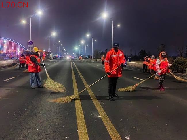 截至凌晨5点,经过全体环卫工人连续三个多小时的奋战,敦化市主要街道已基本恢复整洁。在路灯的映照下,那一抹抹橙色显得格外温暖而明亮。