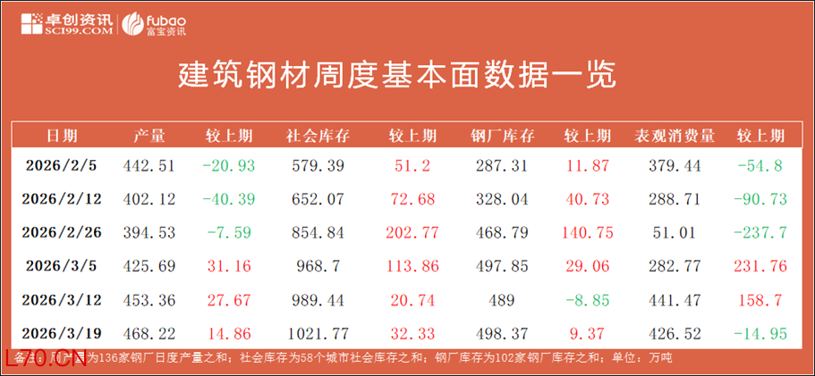 本周建材产量小幅增加,社库,厂库小幅垒库,表需小幅回落。本周表需426.52万吨,这个数据大概是高峰期的8成上下。