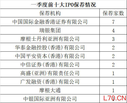 【导读】一季度港股IPO保荐机构排行榜