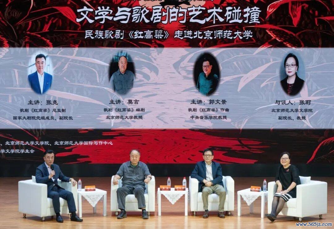 中国经济网北京9月23日讯(记者 成琪)9月19日晚,国家大剧院“经典艺术讲堂”携手歌剧《红高粱》主创来到北京师范大学。国家大剧院党组成员、副院长、歌剧《红高粱》总监制张尧,歌剧《红高粱》作曲郭文景,编剧莫言与北京师范大学文学院副院长张莉进行了深入对谈,与北京师范大学文学院的师生们共同探讨歌剧《红高粱》的制作缘由与改编特色,以及如何在文艺创作中讲好中国故事、感受民族精神。