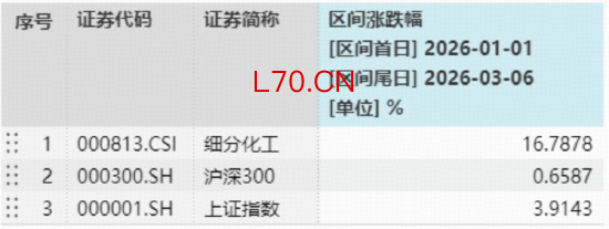 注:统计区间为2026年1月1日至2026年3月6日,细分化工指数近5个完整年度的涨跌幅为:2021年,15.72%;2022年,-26.87%;2023年,-23.17%;2024年,-3.83%;2025年,41.09%。指数成份股构成根据该指数编制规则适时调整,其回测历史业绩不预示指数未来表现。