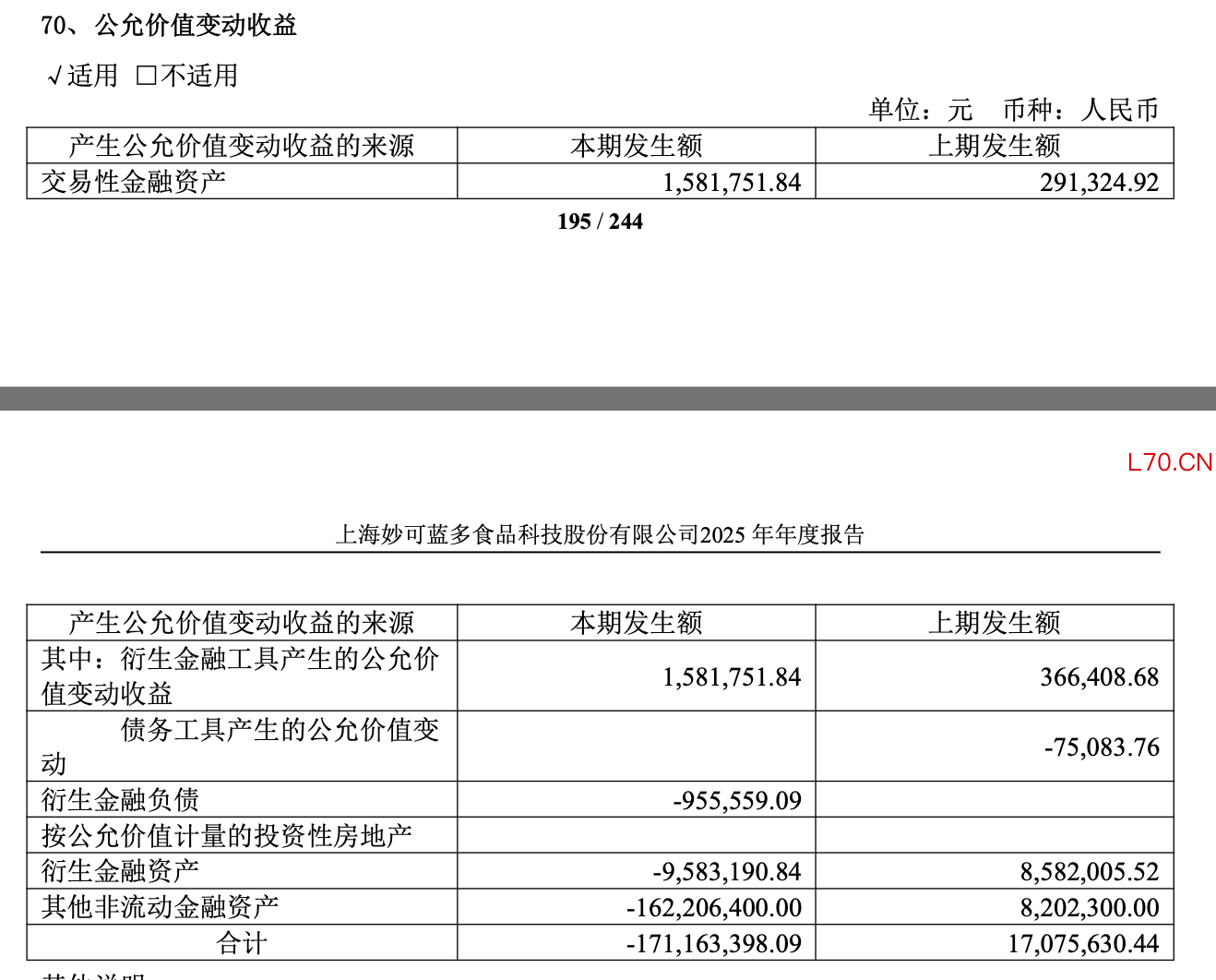 背后的关键则是公允价值变动损失达到了1.71亿元。这一结果也并不令人意外,早在今年1月,妙可蓝多就披露了拟确认公允价值变动的公告,彼时妙可蓝多称预计将影响公司归母净利润1.19亿元至1.27亿元,预计公司2025年归母净利润为正值,且同比变动幅度未超过50%。