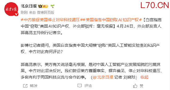 白宫指责中国“窃取”美国AI知识产权,外交部驳斥:毫无根据